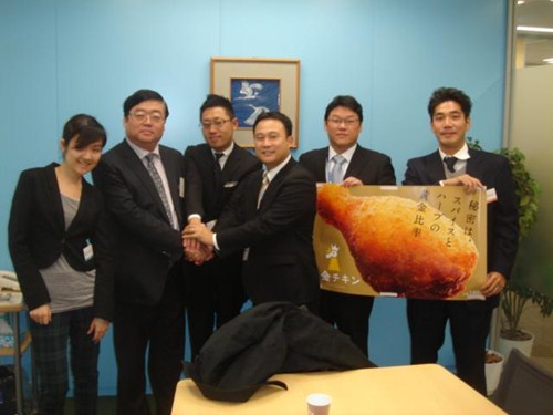 唐斌資深總裁表示,此次黃金琵琶腿正大各公司各部門從研發(fā)、品管、生產(chǎn)、計劃、采購各部門給以極大支持和努力,保質(zhì)保量穩(wěn)定供貨,在此背景下商談2014年黃金琵琶腿70~80%訂單給正大。三菱商事承諾沒有問題。唐斌資深總裁適時邀請友永伸宏部長2014年1月方便的時候回訪正大。友永伸宏部長欣然同意。
